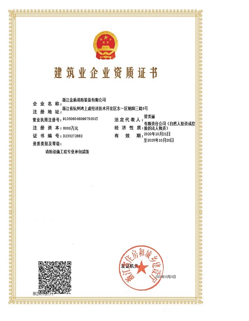 近期,從金盾消防傳來喜訊,憑借公司雄厚的技術(shù)和人才的實力,歷經(jīng)紹興市和浙江省建管局的嚴格審核和層層篩查,浙江金盾消防獲得了建筑企業(yè)消防施工二級資質(zhì),成為了消防裝備制造行業(yè)首家獲得消防工程施工資質(zhì)的單位,開啟了浙江金盾消防裝備有限公司消防工程施工業(yè)務(wù)的新局面!
